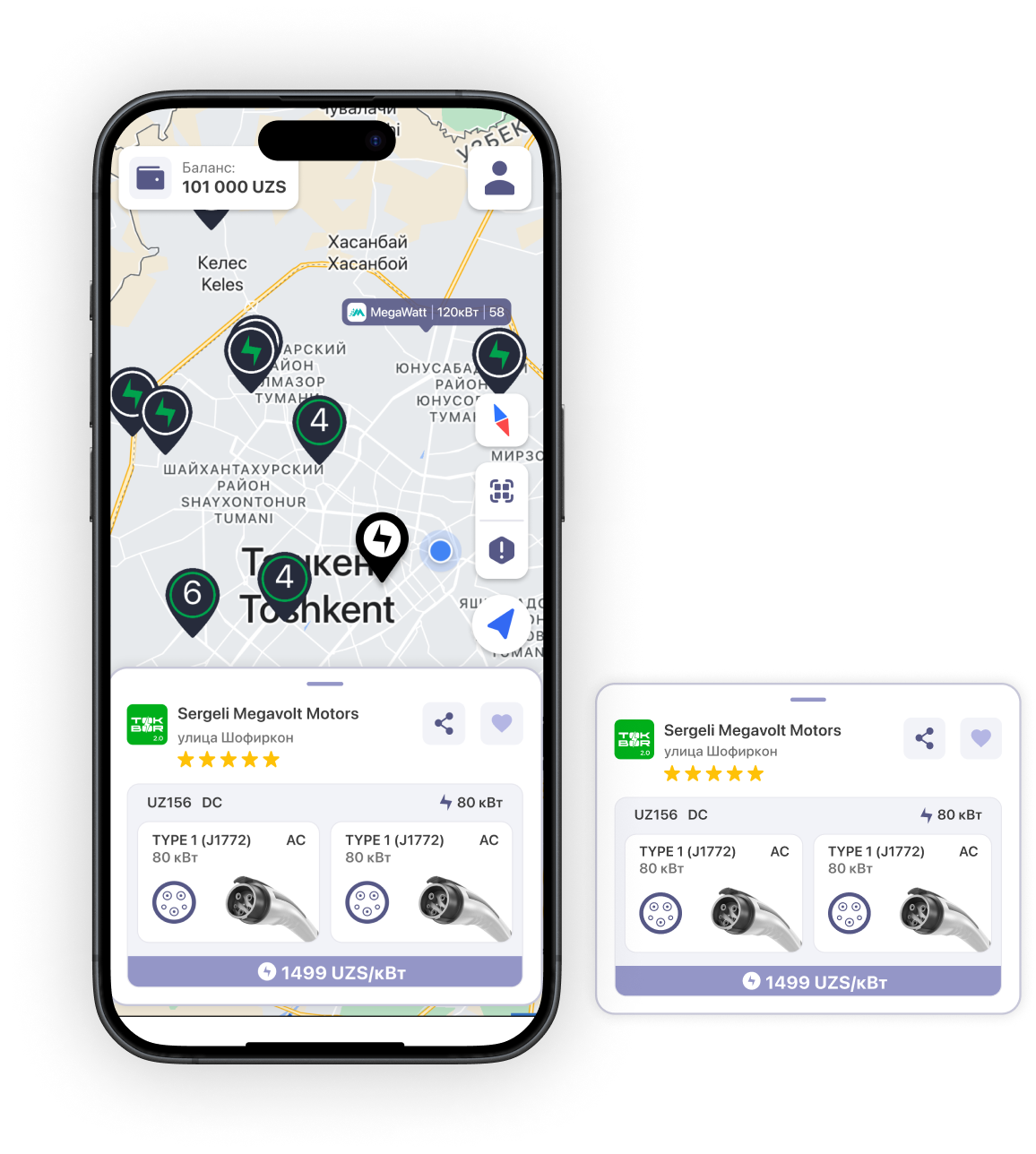 Biz ma'lumotlar bazasini muntazam ravishda yangilab turamiz va zaryadlash stantsiyalarining mavjudligi, narxlari va texnik xususiyatlari to'g'risida dolzarb ma'lumotlarni saqlaymiz